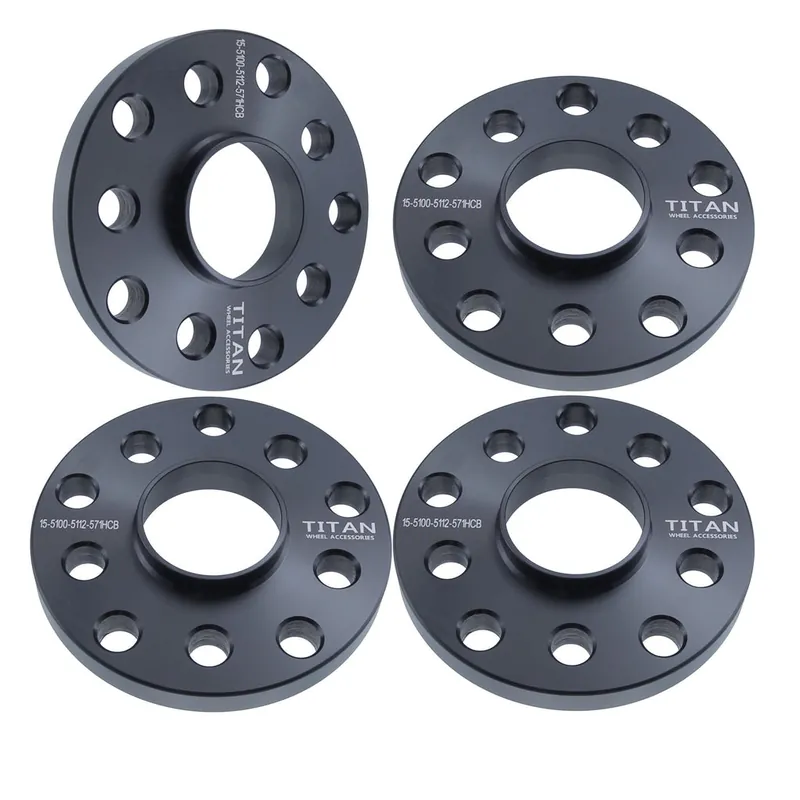 These Titan Wheel Accessories 15mm hubcentric wheel spacers are designed with a 5×100 & 5×112 bolt pattern and 57.1mm hub bore for VW Beetle, Golf, Jetta, Passat and Audi TT. They are machined from T6 6061 billet aluminum, making them both lightweight and durable. These spacers will improve the stance of your vehicle, providing a more aggressive look while also adding additional clearance for aftermarket brake and suspension parts. They also allow for larger wheel and tire combinations to be installed, giving you more options for customization.