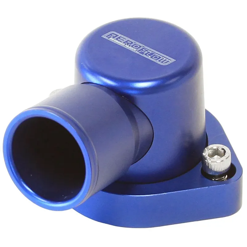 The Aeroflow Performance billet thermostat housings are a three-piece design that allows for correct positioning of the outlet to suit a large array for applications especially in conversions where small can be an issue. Machined from T6-6061 billet aluminium and allows for a full 360-degree swivel rotation for ease of installation. All Aeroflow Performance thermostat housings feature an O-ring base flange, as opposed to using the factory paper style gasket, this ensured a superior leak free seal. Each thermostat housing outlet can be untreated exposing a female 1-1/4”-20 thread to adapt a AN fitting or a larger barb fitting for custom applications. Available in several anodised finishes.