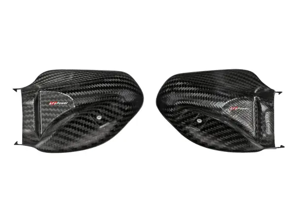Dynamic Air Scoops lower air intake temperatures by forcing more cool air from the front grilles into the factory intake tract. These scoops are constructed from 100% twill weave carbon fiber (no fiberglass) for lightweight, heat protection, and good looks. They feature a gloss finish on the exterior and a matte finish inside. They are precisely designed and manufactured to snap directly into the factory inlet ducts and mount onto the vehicle’s V-support brace. No additional hardware is required for a hassle-free installation.