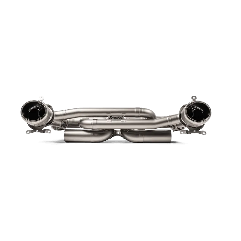 Taking design to new limits, the Slip-On Race Line (Titanium) is beautifully finished with unique tailpipes to showcase a variety of surfaces, emphasizing the latest in exhaust technology and production. From the outer part, which is sandblasted and coated for increased durability and longevity, and incorporates a laser-engraved Akrapovic logo, to the inner tubing, which is polished on the outside and has a black-coated interior, all set within the bumper inserts, this system fully complements the lines of the car. Constructed from lightweight, high-grade titanium alloys, which reduce weight by 60% over the sports stock system, the addition of this system will add power and torque comparable to the sports stock system (measurements are presented in the technical data). To add to the sensory enjoyment, the sound offers aural pleasure from the moment the ignition is turned on, with special care being taken to provide acoustic feedback with a deep and harmonic nature, creating a great sound with absolutely no compromise on comfort.