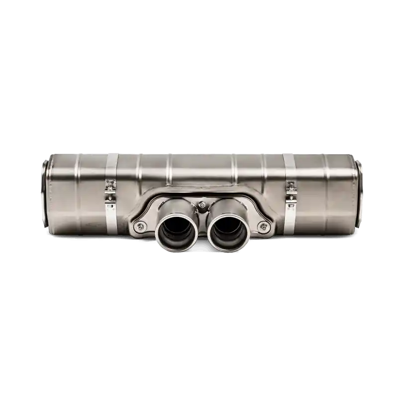 Akrapovic’s Slip-On Line represents the first step in the exhaust system tuning process and the muffler can easily be installed onto the Porsche GT3’s original system. Built from hi-grade titanium and finished with two eye-catching double round tailpipes, this entry system makes the GT3 more powerful and lighter, and gives the car that unique Akrapovic sound, while still meeting ECE specifications.