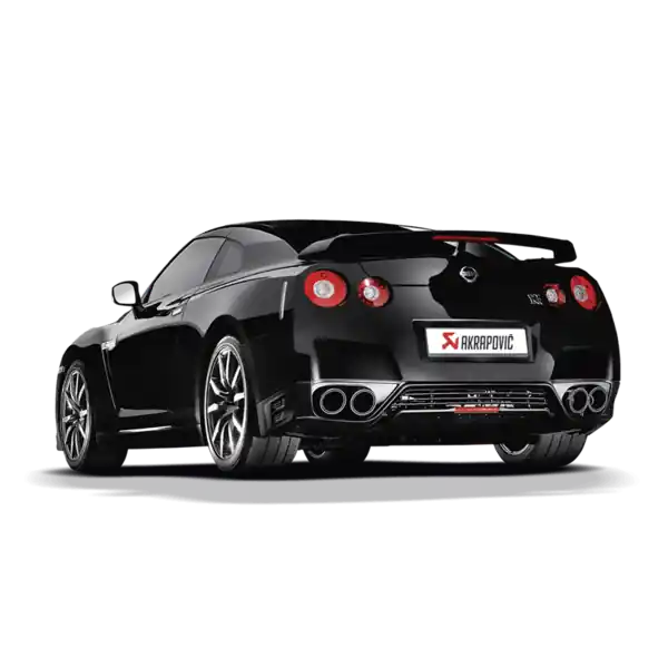 The Nissan GT-R is one of the fastest cars to race on Germany’s famous Nurburgring Nordschleife (North Loop). To enhance this already impressive performance, we offer our Akrapovic Slip-On exhaust system made completely of our proprietary titanium. This beautifully crafted sport exhaust achieves weight reduction and delivers power improvement, most noticeably at the top of the rpm range. The sound is also improved, with a deeper, sportier sound delivered without droning, and this perfectly complements the car. The attention to detail can be seen in every component. Even the exhaust tailpipes were designed to resemble the trademark GT-R tail lights. Complete with a set of four exquisite tailpipes in carbon fibre.