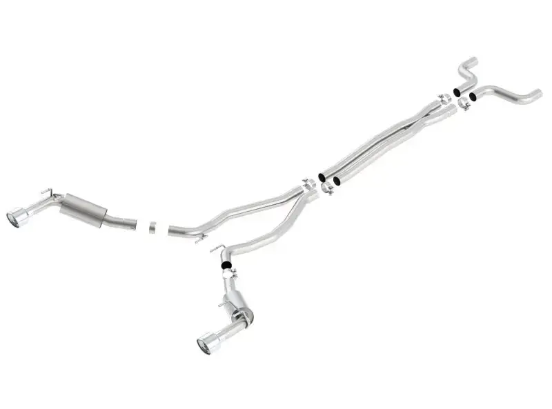 Fits vehicles WITHOUT the factory Ground Effects package. System features a merge X-Pipe for increased performance and improved sound. System has 4.5″ polished T-304 stainless steel tips. BORLA Cat-Back and Axle-Back exhaust systems feature patented straight-through and multi-core technology designed to unleash hidden horsepower. Increased exhaust velocity adds power, driving excitement, fuel economy, and the distinctive BORLA Sound of Power respected by motoring enthusiasts everywhere.