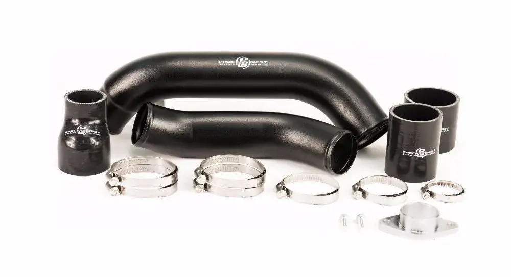 The Process West Charge Pipe Kit for the 2015+ Subaru WRX, is the best upgrade charge pipe kit on the market. Made in 2 pieces it is easy install, without the hassle of trying to feed one big pipe into position and includes all the necessary couplers and clamps for the perfect fitment. The charge pipe kit provides a much smoother air flow path from the turbo to the intercooler, over the factory pipe. Finished in a nice black powdercoat, the upgrade doesn’t look out of place, and gives a factory appearance.
