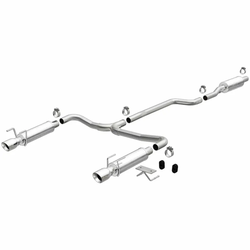 The MagnaFlow 2016-2019 Chevrolet Cruze Street Series Cat-Back Performance Exhaust System 19480 brings out the personality of your 1.4L 2016-2019 Chevrolet Cruze with our signature resonant, powerful engine tone and dyno-proven performance. Thanks to its fast-flowing, mandrel bent 2.25in. main piping and 3 Straight-Through mufflers ending in a Dual Split Rear exit with 3.5in. Polished Welded-On Double Wall Angle Cut Folded Edge tips, this Chevrolet Cruze exhaust kit has the performance chops to match its sporty sound and appearance. Upgrade your ride to the next level with an exhaust that has the pipes to put other Chevrolet Cruze’s to shame. With this system your vehicle will be producing Moderate exterior and Mild interior sound levels while leaving other cars and trucks feeling envious at every stoplight. Exhaust kit 19480 features a cat-back layout that replaces your ride’s stock exhaust components from near the catalytic converter on back. Extensive 3D scanning during development has resulted in a direct-fit design that you can easily install yourself. 19480 is produced using CNC precision robotic manufacturing techniques and is backed by MagnaFlow’s 1-year limited finish warranty and limited lifetime construction warranty.