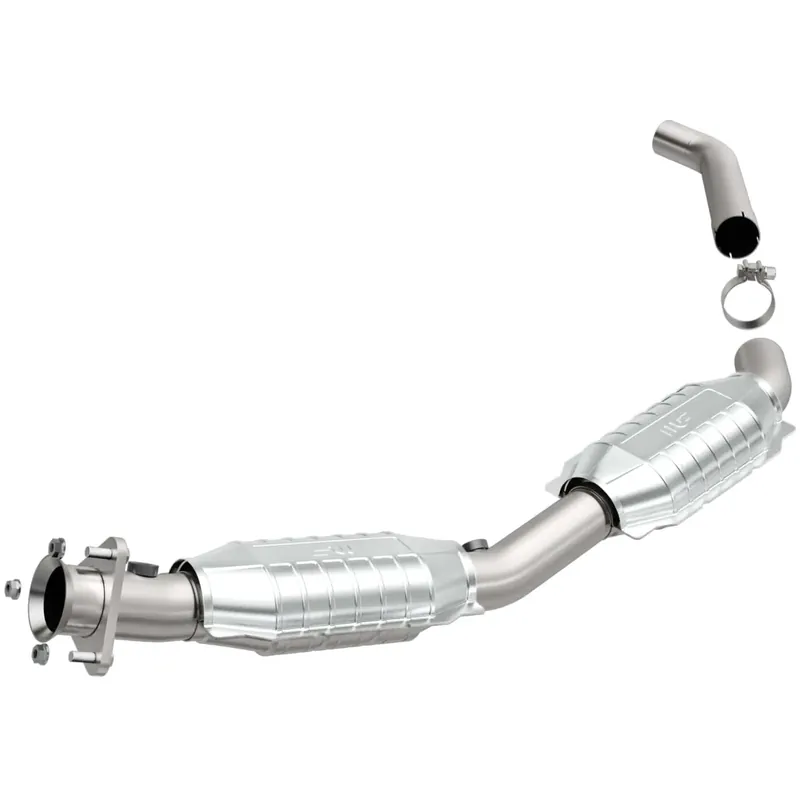 MagnaFlow specializes in superior catalytic converter and exhaust technology and has spent the past 30+ years earning its reputation as a global market leader. American engineered and manufactured, MagnaFlow Catalytic Converters combine efficient industrial design to produce a product that exceeds, rather than meets, the highest standards of product performance and efficiency in the industry. MagnaFlow uses both Ceramic and Metallic substrates with different combinations of cell density and wall thickness to meet vehicle specific requirements. MagnaFlow Direct-Fit Catalytic Converters are designed for easy bolt-on installation for the Professional Installer. Each is designed to exact the original equipment specifications. While the majority of the Direct-Fit Catalytic Converter products do not require welding, cutting or bending, limited applications may require additional welding for optimal installation.All Federal catalytic converters meet EPA requirements. Federal Catalytic Converters are not legal for sale, installation or use on vehicles registered in the state of California.All California State Catalytic converters are CARB compliant. Converters in this catalog are based on Executive Orders issued by the California Air Resource Board and must be used in accordance with this information. In California, it is illegal to select a catalytic converter for installation based solely on vehicle weight and engine size. * Stainless steel construction * Formulated for Gas and Diesel Applications