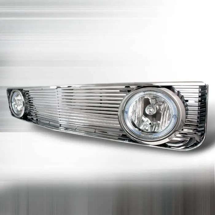 Features: - Chrome finish 1-piece grille with OEM halo fog lights