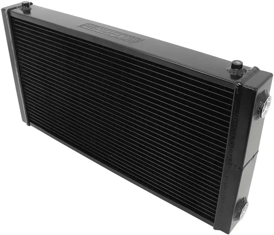 The Aeroflow Performance universal heat exchanger is a dual pass/single row design which allows the coolant to flow across the core of the heat exchanger two times before exiting the radiator for the lowest outlet temperature possible. In a liquid-to-air intercooler system or a supercharger setup, the air is cooled by liquid, typically water. These systems require a supplemental heat exchanger to cool the liquid running through the intercooler. it is recommended this type of heat exchanger is front mounted and/or accessible to fresh air flow for optimal performance.