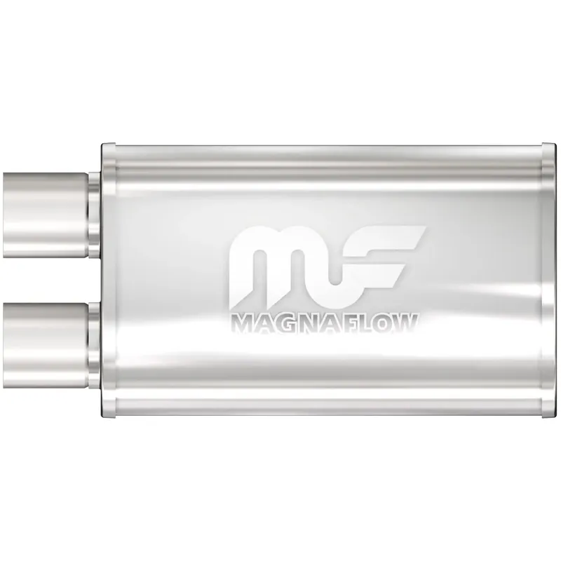 The MagnaFlow 5 X 8in. Oval Straight-Through Performance Exhaust Muffler 14210 brings our signature sound and dyno-proven performance to your ride with a free-flowing straight-through perforated stainless steel core wrapped in stainless steel mesh and acoustic fiber fill, and a weight-optimized, reversible 2.5/2.5in. diameter inlet/outlet Straight-Through layout. Muffler 14210s 5x8x14in. oval-shaped body features a premium, brushed finish for an elevated aesthetic that matches the enhanced exhaust note and performance that this muffler brings to your ride. The universal design allows for flexible placement of 14210 within your exhaust system to meet the specific spacing requirements of your vehicle, although professional installation is highly recommended. 14210 is made of durable, corrosion resistant stainless steel and produced using cutting-edge CNC precision robotic manufacturing techniques, all backed by MagnaFlow’s limited lifetime construction warranty.