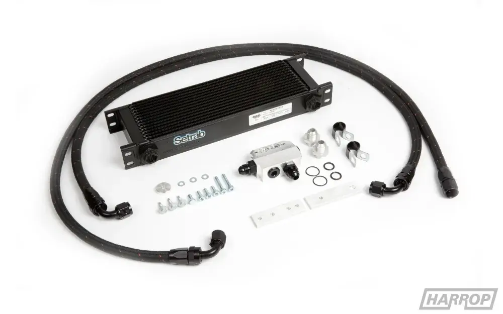 The light weight aluminium Setrab oil cooler is capable of withstanding pressures of 150 PSI has been specifically designed to do this. Setrab coolers have been used by race teams all over the world in high performance vehicles since the 1970’s. Harrop has developed a kit that makes the installation of the cooler simple and easy to fit no matter what you use your vehicle for.