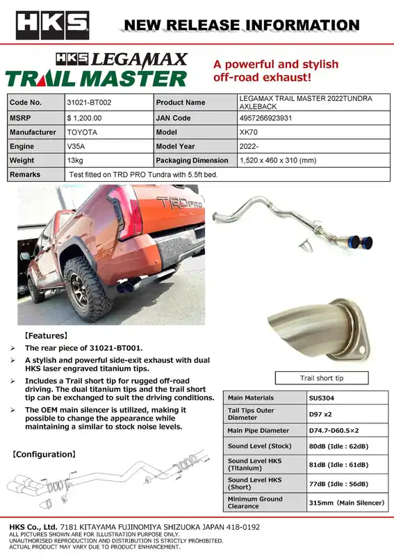 HKS LEGAMAX TRAIL MASTER 2022TUNDRA AXLEBACK Weekend Sale