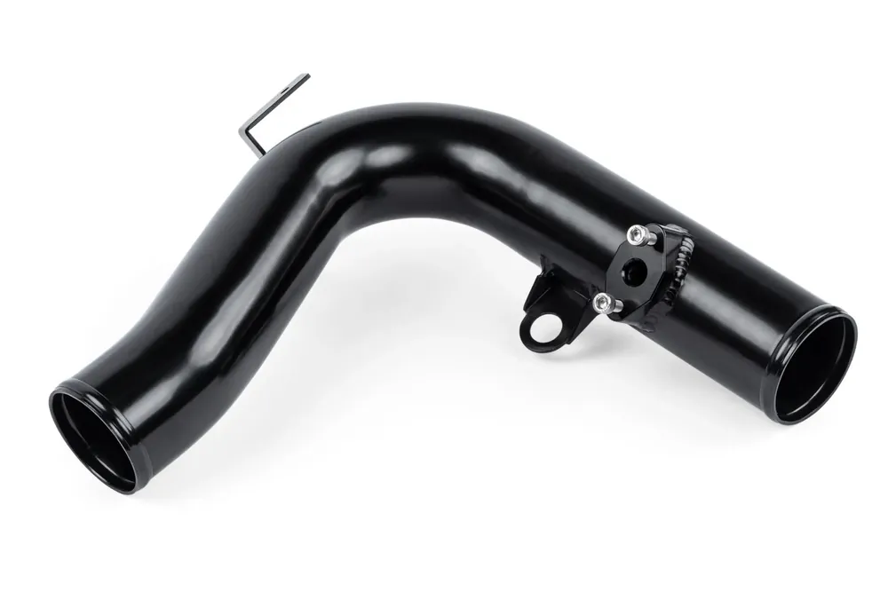 We upgrade the factory plastic pipe with a strong 60mm aluminum pipe. Due to the thin-walled nature of metal vs plastic, we’re able to increase the internal diameter of the pipe to maximize airflow. The MAP sensor mounting point is made from CNC-machined billet-aluminum. All brackets are TIG-welded for a strong and precise fit, and the pipe is coated black. A protruding lip at the edge of the pipe helps prevent hose slippage. This pipe is a direct fit to the APR or OEM throttle body hose, as well as the APR or OEM intercooler hose. APR recommends upgrading the throttle body and intercooler hoses as well for maximum performance and reliability.