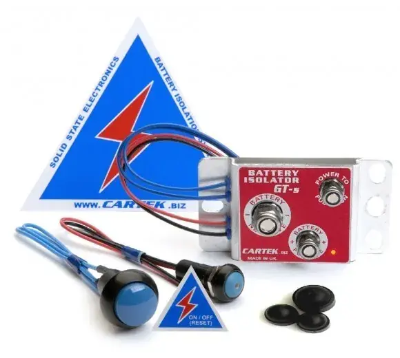 The Cartek Battery Isolator GT comes with built in alternator run down protection meaning no extra wiring and no extra components.