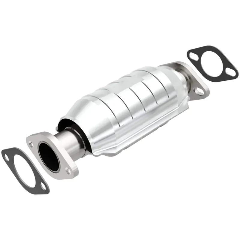 MagnaFlow specializes in superior catalytic converter and exhaust technology and has spent the past 30+ years earning its reputation as a global market leader. American engineered and manufactured, MagnaFlow Catalytic Converters combine efficient industrial design to produce a product that exceeds, rather than meets, the highest standards of product performance and efficiency in the industry. MagnaFlow uses both Ceramic and Metallic substrates with different combinations of cell density and wall thickness to meet vehicle specific requirements. MagnaFlow Direct-Fit Catalytic Converters are designed for easy bolt-on installation for the Professional Installer. Each is designed to exact the original equipment specifications. While the majority of the Direct-Fit Catalytic Converter products do not require welding, cutting or bending, limited applications may require additional welding for optimal installation.All Federal catalytic converters meet EPA requirements. Federal Catalytic Converters are not legal for sale, installation or use on vehicles registered in the state of California.All California State Catalytic converters are CARB compliant. Converters in this catalog are based on Executive Orders issued by the California Air Resource Board and must be used in accordance with this information. In California, it is illegal to select a catalytic converter for installation based solely on vehicle weight and engine size. * Stainless steel construction * Formulated for Gas and Diesel Applications