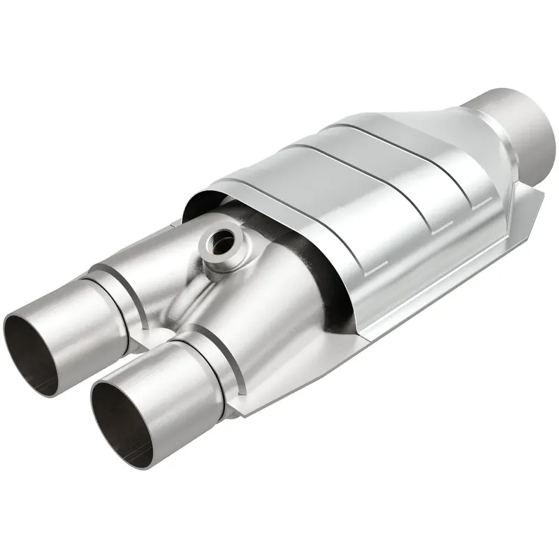 MagnaFlow specializes in superior catalytic converter and exhaust technology and has spent the past 30+ years earning its reputation as a global market leader. American engineered and manufactured, MagnaFlow Catalytic Converters combine efficient industrial design to produce a product that exceeds, rather than meets, the highest standards of product performance and efficiency in the industry. MagnaFlow uses both Ceramic and Metallic substrates with different combinations of cell density and wall thickness to meet vehicle specific requirements.MagnaFlow Universal Catalytic Converters form the basic building blocks for a comprehensive line of direct-fit applications. The main benefit of the universal catalytic converter is that one unit may cover a wide variety of vehicle makes and models. Installing universal converters often requires the use of welding, cutting and tube bending equipment that is readily available to most professional installers.All Federal catalytic converters meet EPA requirements. Federal Catalytic Converters are not legal for sale, installation or use on vehicles registered in the state of California.All California State Catalytic converters are CARB compliant. Converters in this catalog are based on Executive Orders issued by the California Air Resource Board and must be used in accordance with this information. In California, it is illegal to select a catalytic converter for installation based solely on vehicle weight and engine size. * Stainless steel construction * Formulated for Gas and Diesel Applications