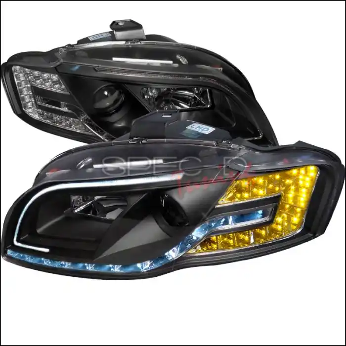 - Audi A4 Spec-D Black Housing Projector Headlight with Daytime Running Light & Adjustable Motor – LHP-A406JM-8MR-APC