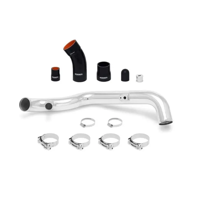 Increase the airflow to your 1.6L EcoBoost with the Mishimoto Fiesta ST cold-side intercooler pipe kit for the 2014–2019 Ford Fiesta ST. The stock cold-side Fiesta ST intercooler pipe is riddled with restrictive bends and small diameter sections that impede airflow. These Mishimoto intercooler pipes have a 2.5″ diameter and are mandrel-bent to eliminate any restrictions. When you’re turning up the boost on your Fiesta, these pipes will have no problem supporting the power you throw at them.