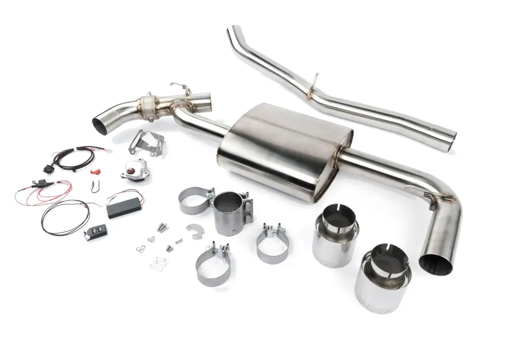 - Includes electronically controlled exhaust valve with key fob remote which allows manual control of exhaust sound