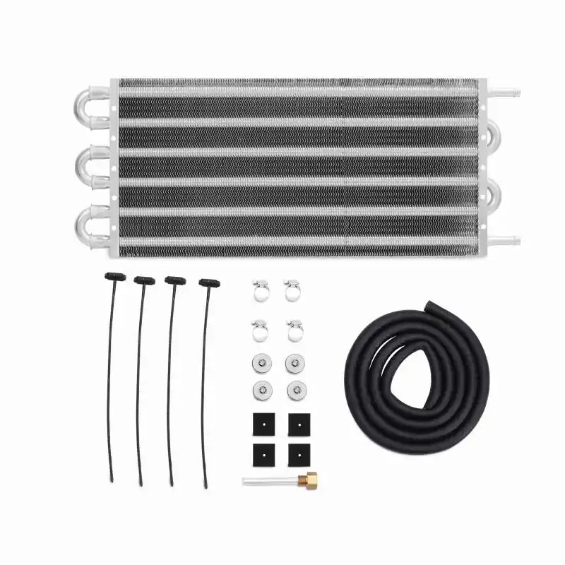 Keep high fluid temperatures at bay with a Mishimoto Universal Transmission Fluid Cooler! This cooler features a highly efficient 20″ x 7.5″ x 0.75″ tube-and-fin core that promotes dramatic temperature drops. Mishimoto universal fluid coolers are applicable for use with transmission fluid, engine oil, power steering fluid, and a variety of other automotive fluids. This ready-to-install kit includes 5′ of durable rubber hose, a universal mounting kit, and a four worm-gear clamps for secure connections. The universal mounting kit provides installation flexibility to fit any application. This cooler utilizes 3/8″ push-on fittings, perfect for use as a replacement for a damaged factory cooler, or as an upgrade to a vehicle not equipped with a liquid-to-air cooler. As with all our products, this fluid cooler includes the Mishimoto Lifetime Warranty