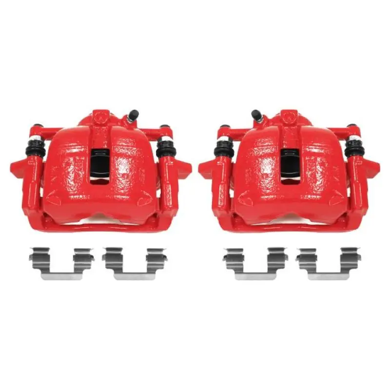 PowerStop Powder Coated Brake Calipers are made specifically with the enthusiast in mind. These calipers (sold as pairs) bolt directly in place of the original stock calipers and look great behind any set ofwheels. PowerStop Brake Calipers are engineered to provide the best performance and reliability, and are coated with a durable electrostatic high-temperature red powder coat. The easy-to-clean coating provides resistance to rust and corrosion thus extending the life of your calipers. PowerStop calipers are 100% pressure tested and inspected to verify piston operation to guarantee a reliable, high quality brake performance. Expertly assembled with everything needed for a brake upgrade using new seals, caliper slide pins/bolts, dust boots, bleeder screws, and stainless-steel pad attachment hardware. High temperature EPDM rubber dust boots and premium lubricants ensure a smooth caliper operation and durability in the harshest conditions. PowerStop Powder Coated Brake Calipers are finished in a high-temp powder coating and designed to enhance both the performance and custom look of your vehicle!