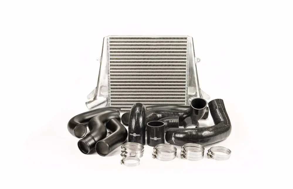 The Process West Stage 2 Front Mount Intercooler Kit for the Ford FG Falcon includes a 420 x 410 x90mm bar & plate intercooler core, with hi-flow polished aluminium end tanks. This allows for smooth flow and effective cooling of the charge air entering the engine. Along with mandrel bent aluminium piping this Front Mount Intercooler Kit offers superior cooling performance for the Ford FG Falcon. Included in the kit is all the necessary silicone joiners and appropriate stainless steel hose clamps.