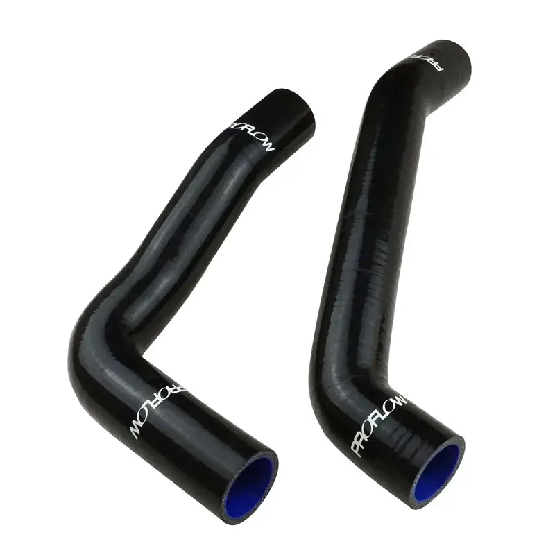 Upgrade your cooling system with our silicone radiator hose kits, adding style and durability to your vehicle. All kits consist of super smooth, heat-resistant 4-ply/5mm polyester reinforced silicone, increasing abrasion resistance and stiffness properties. They are designed for specific makes and models, making these a direct fit replacement for your old radiator hoses. Available in a gloss-black outer and blue inner protective layer.