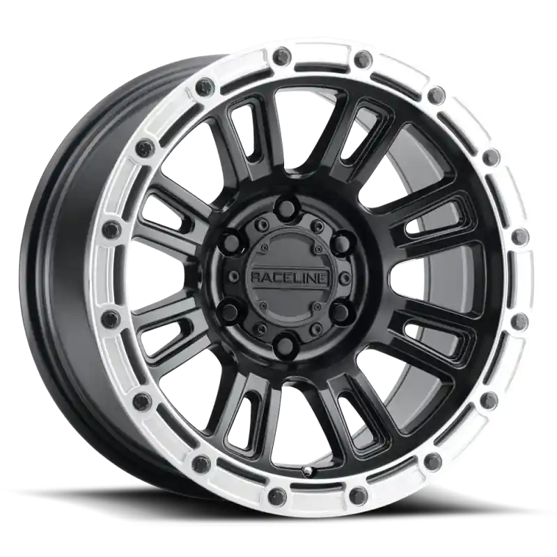Raceline 956BS Compass 17×8.5in / 6×120 BP / 0mm Offset / 67.1mm Bore – Black & Silver Lip Wheel