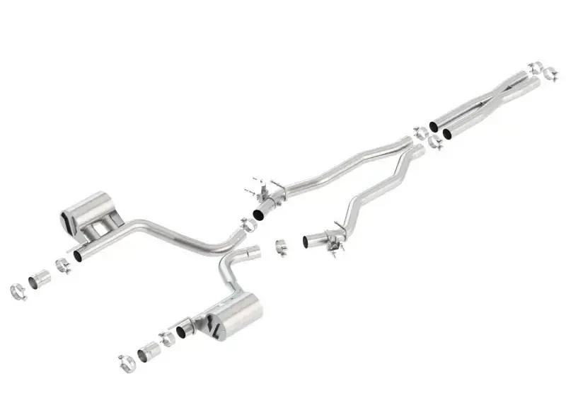 This system features the aggressive ATAK sound and a merge X-Pipe for increased performance and improved sound. This system INCLUDES Active MDS (Multi-Displacement System) Valves. This system does NOT include tips. Use factory valance / tips or optional BORLA tips 60729, 60729BC, 60729CFBA. BORLA Cat-Back & Axle-Back exhaust systems feature patented straight-through and multi-core technology to unleash hidden horsepower. Increased exhaust velocity adds power, driving excitement, fuel economy, and the distinctive BORLA Sound of Power respected by motoring enthusiasts everywhere.