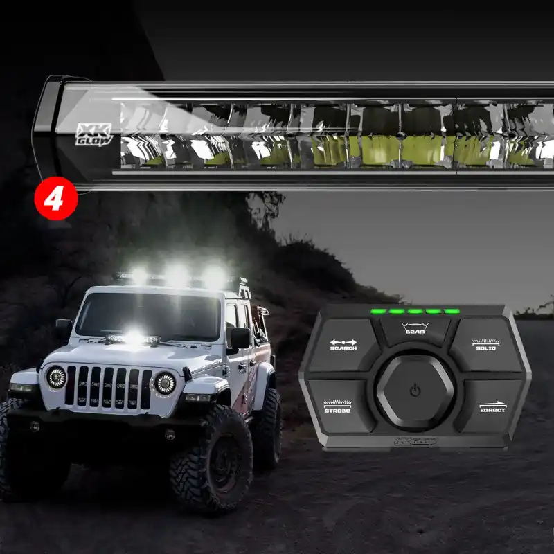 A revolutionary S.A.R.(Search and Rescue) lighting system with a unique controller and multi-pan technology that allows you to individually turn each LED on/off and control the direction of the beam up to a full 360 degree, when four light bars are activated. Equipped with multiple modes to allow for various widths and focused beams.Search mode focuses the light exactly where you need it, solid-on keeps a constant beam in all directions, direct mode enables a directional chase, and strobe enables a continuous flash pattern.